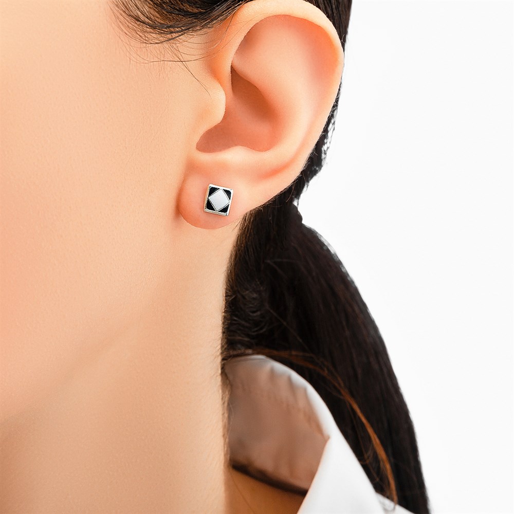 Пусета из серебра «B&W», черно-белая, белый ромб на черном