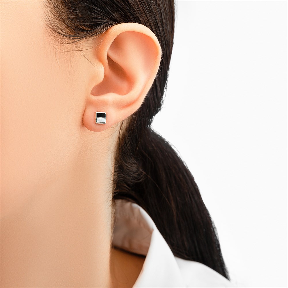 Пусета из серебра «B&W», черно-белый квадрат, горячая эмаль