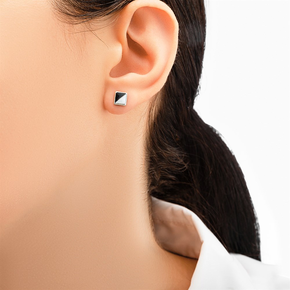 Пусета «B&W», выполнена в серебре 925* по технологии горячего эмалирования.