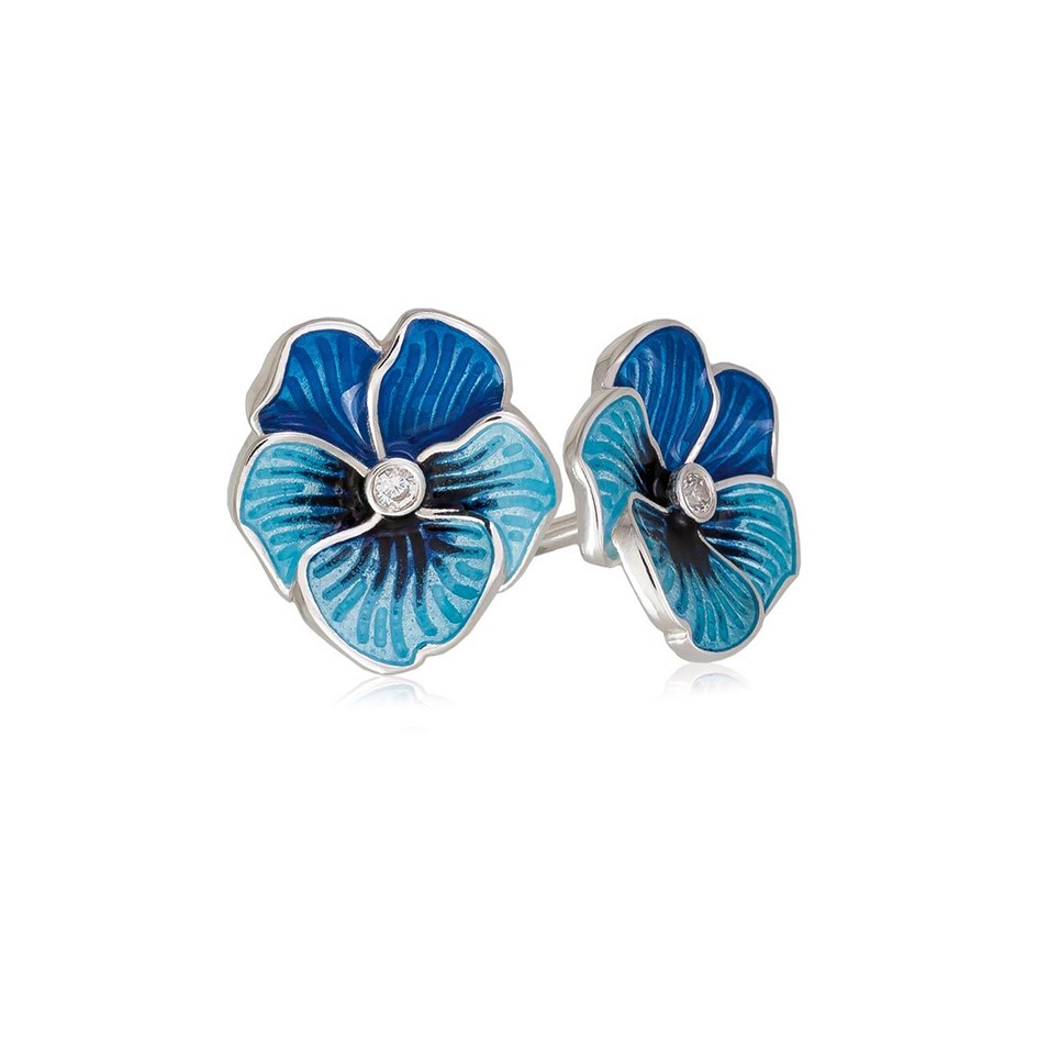 Пусеты «Анютины глазки» выполнены в серебре 925* по технологии горячего эмалирования, вставки – фианиты.