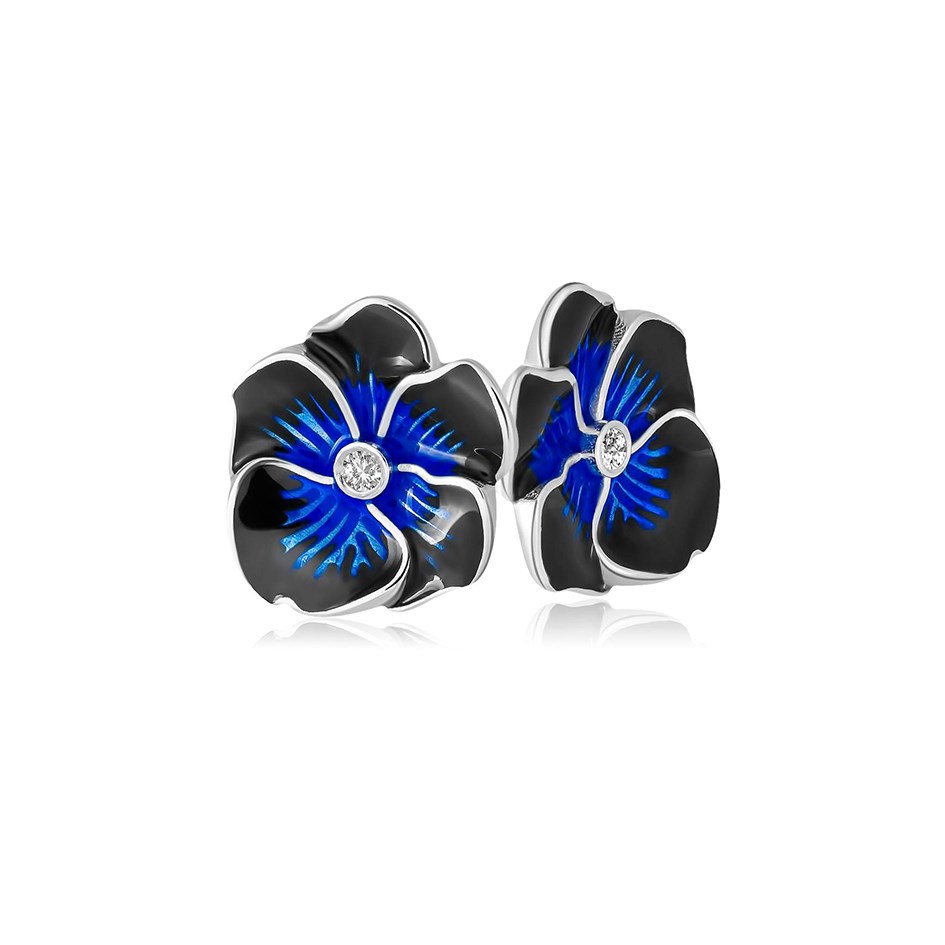 Пусеты «Анютины глазки» выполнены в серебре 925* по технологии горячего эмалирования, вставки – фианиты.