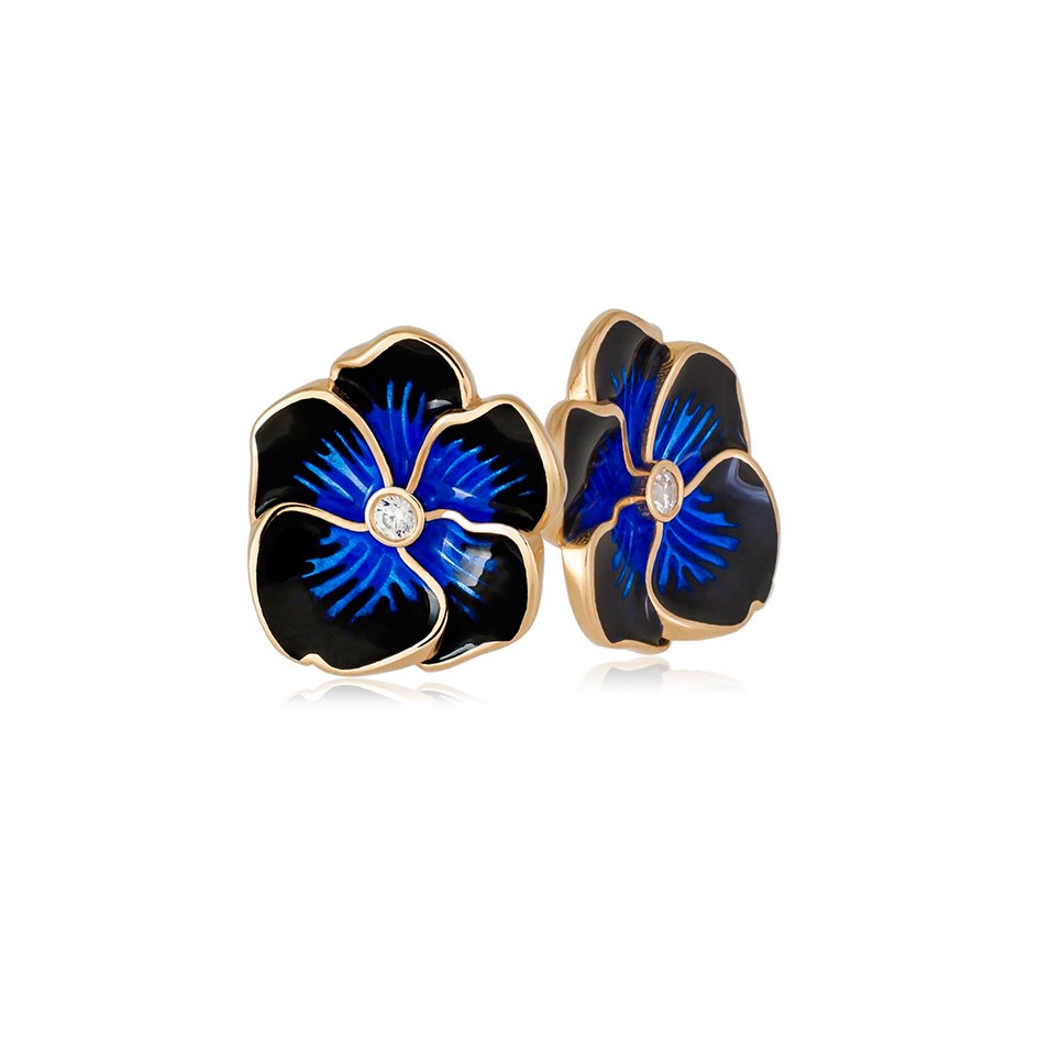 Пусеты «Анютины глазки» выполнены в серебре 925* с золочением 999* по технологии горячего эмалирования, вставки – фианиты.