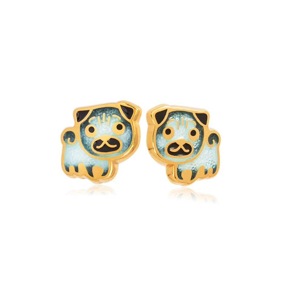Пусеты «Мопс», выполненные в серебре 925* с золочением 999* по технологии горячего эмалирования.
