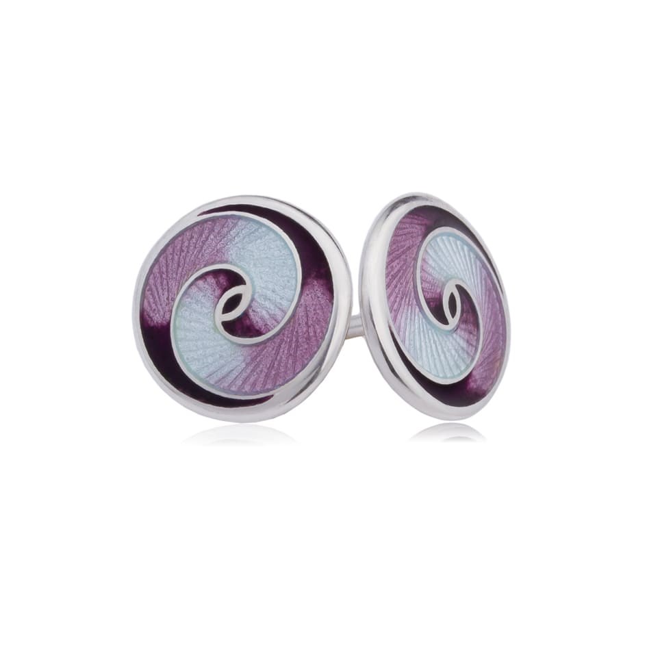Пусеты из серебра «Невозможные фигуры», фиолетовый вихрь, горячая эмаль