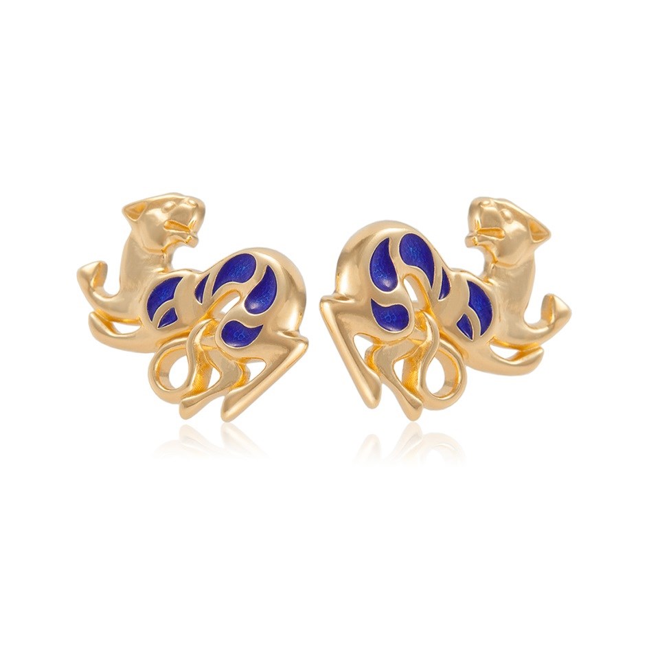 Пусеты «Пантеры» выполнены в серебре 925* с золочением 999* по технологии горячего эмалирования.