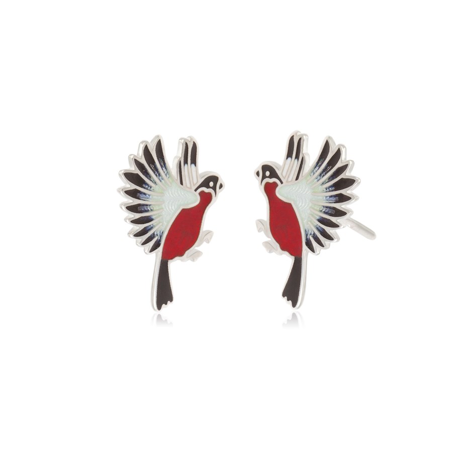 Пусеты «Снегири» выполнены в серебре 925* по технологии горячего эмалирования.