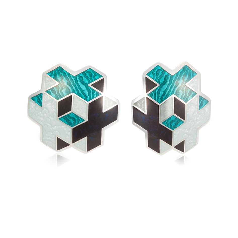 Пусеты «Тетра», выполненные в серебре 925* по технологии горячего эмалирования.