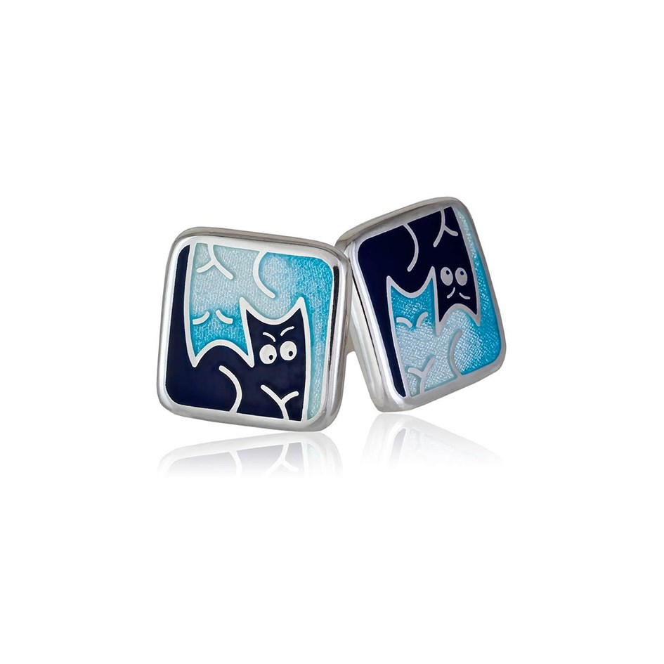 Пусеты «Котики Инь-Ян», выполненные в серебре 925* по технологии горячего эмалирования.