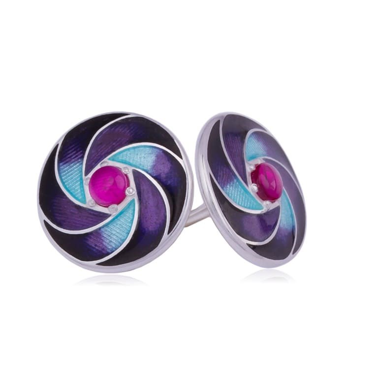 Пусеты «Невозможное», выполненные в серебре 925* по технологии горячего эмалирования, вставки – синтетический гранат.