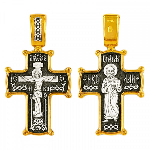 Крест серебрянный, Позолота желтая 999*, с корундами, коллекция "Санкт-Петербург", 4.78 гр., арт. ПР.К.000086