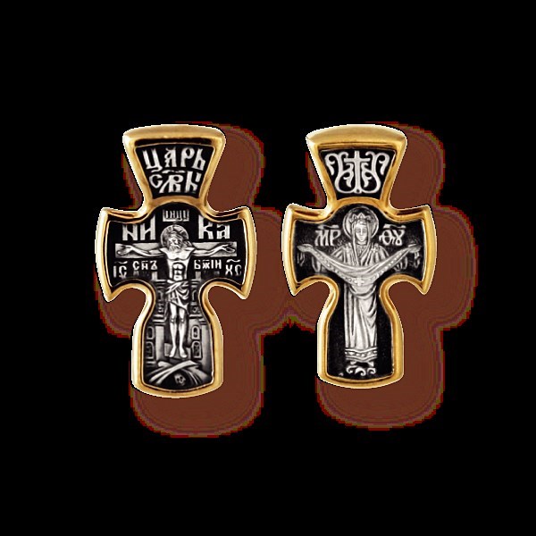 Крест серебрянный, Позолота желтая 999* Чернение (оксидирование), с корундами, Покров Пресвятой Богородицы, коллекция "Санкт-Петербург", 2.69 гр., арт. 225219