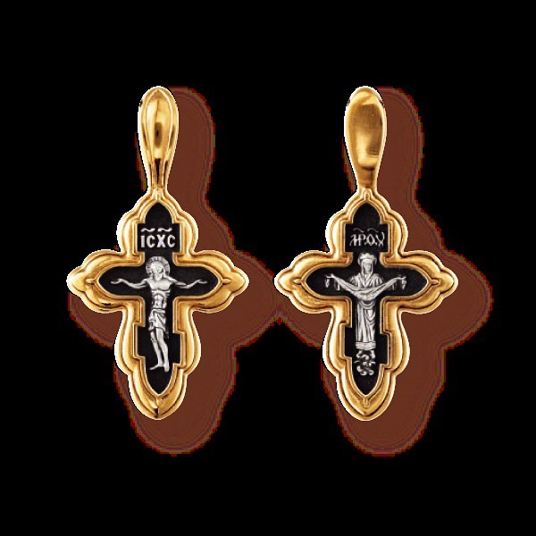 Крест серебрянный, Позолота желтая 999* Чернение (оксидирование), с корундами, Покров Пресвятой Богородицы, коллекция "Санкт-Петербург", 2.44 гр., арт. 225342