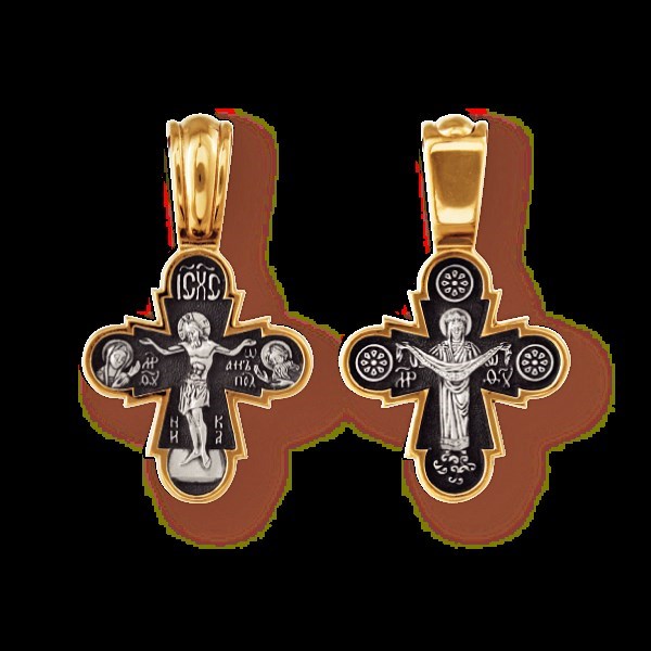 Крест серебрянный, Позолота желтая 999* Чернение (оксидирование), с корундами, Покров Пресвятой Богородицы, коллекция "Санкт-Петербург", 2.90 гр., арт. 225209