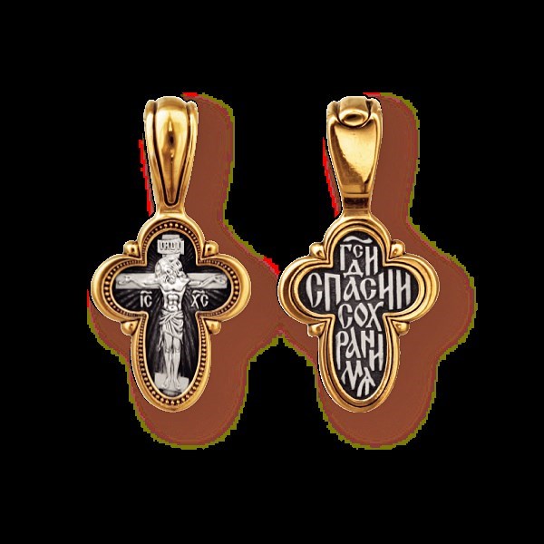 Крест серебрянный, Позолота желтая 999* Чернение (оксидирование), с корундами, Господи, спаси и сохрани, коллекция "Санкт-Петербург", 2.94 гр., арт. 225151