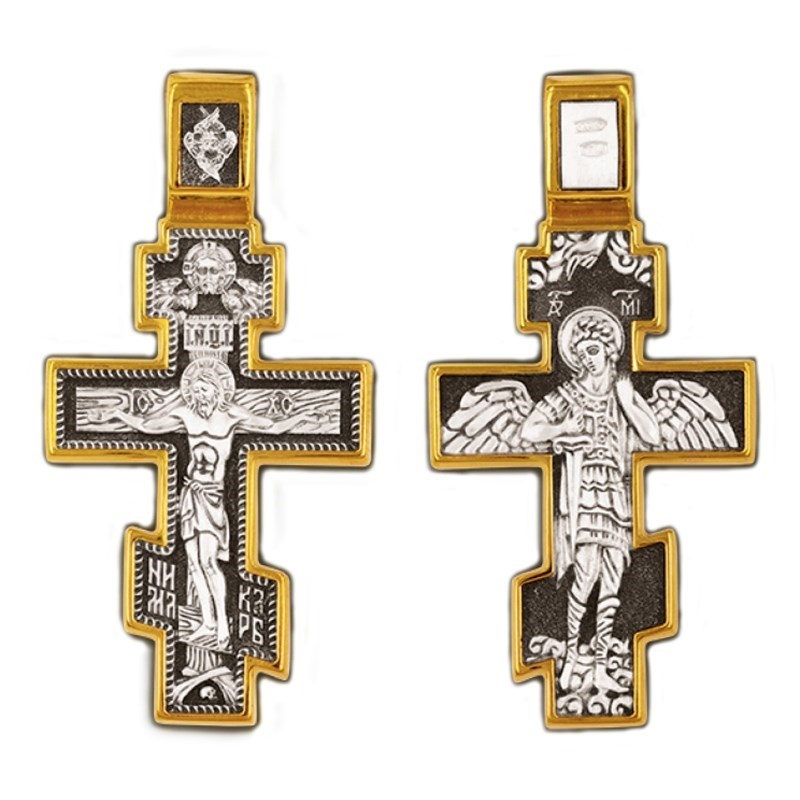 Крест серебрянный, Позолота желтая 999* Чернение (оксидирование), с корундами, Михаил Архангел, коллекция "Санкт-Петербург", 9.12 гр., арт. 224876