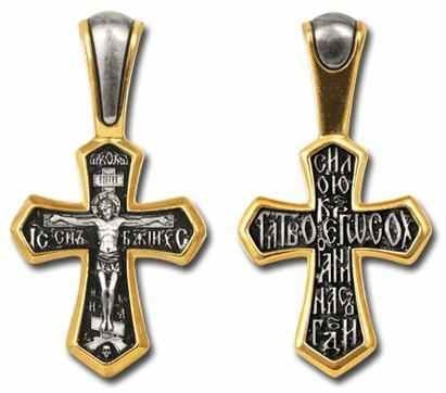 Крест серебрянный, Позолота желтая 999* Чернение (оксидирование), с корундами, Силою Креста Твоего сохрани нас, Господи, коллекция "Санкт-Петербург", 2.56 гр., арт. 225262
