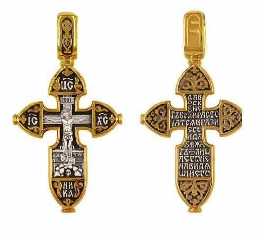 Это освященное православное изделие - Крест из серебра 925 пробы. На нем нанесено покрытие: Позолота желтая 999* Чернение (оксидирование). Имеет вставки из корундов. Цвета камней представлены в ассортименте. Если хотите конкретный цвет, то уточните возможность его выбора у менеджера при заказе. Имеет нанесенную молитву Да воскреснет Бог.... Изделие входит в коллекцию Санкт-Петербург. Весит, от 9.90 гр.