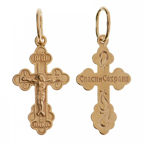 Крест серебрянный, Позолота красная 585*, с корундами, коллекция "Иваново", 0.82 гр., арт. ПР.К.000078