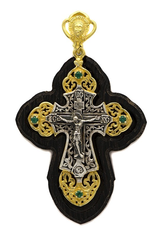 Это освященное православное изделие - Крест из серебра 925 пробы. Имеет вставки из корундов. Цвета камней представлены в ассортименте. Если хотите конкретный цвет, то уточните возможность его выбора у менеджера при заказе. Изделие входит в коллекцию Духовное наследие. Весит, от 11.19 гр.