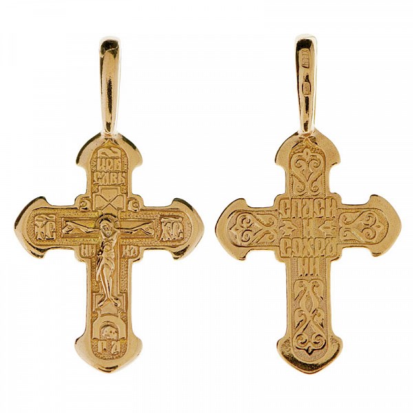 Крест серебрянный, Позолота красная 585*, с корундами, Спаси и сохрани, коллекция "Иваново", 1.13 гр., арт. ПР.К.000058
