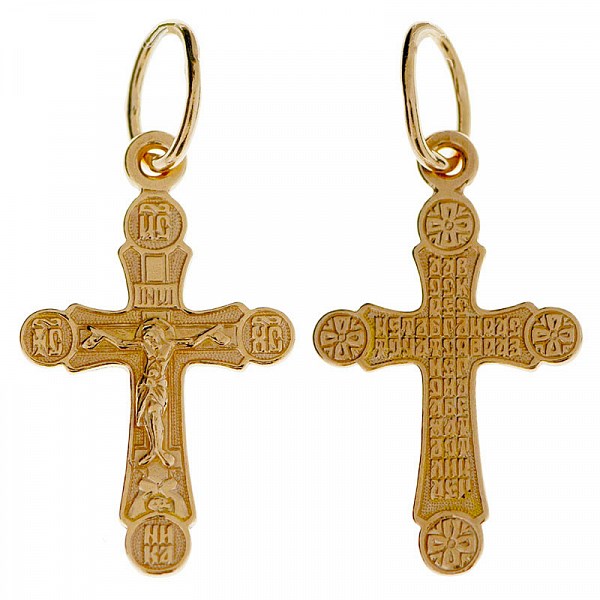 Крест серебрянный, Позолота красная 585*, с корундами, Да воскреснет Бог..., коллекция "Иваново", 0.85 гр., арт. ПР.К.000056