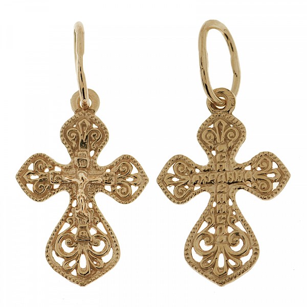Крест серебрянный, Позолота красная 585*, с корундами, Спаси и сохрани, 0.93 гр., арт. ПР.К.000049