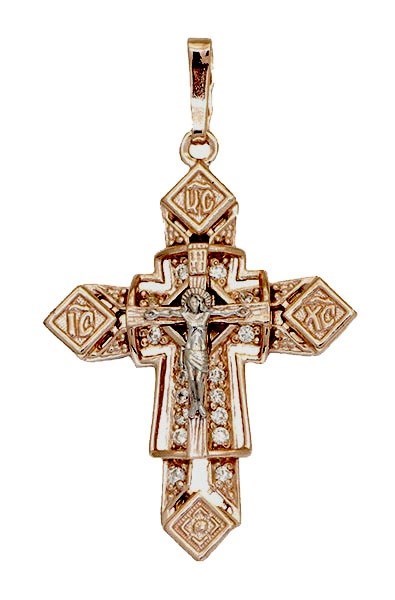 Крест серебрянный, Позолота красная 585*, с корундами, Глас, 2.95 гр., арт. 225347