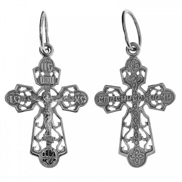 Крест серебрянный, Родий, с корундами, коллекция "Иваново", 1.38 гр., арт. ПР.К.000037