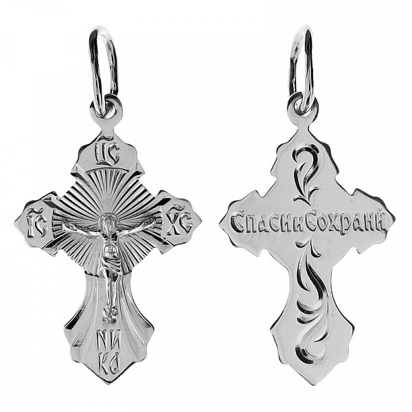 Крест серебрянный, Родий, с корундами, Москва златоглавая-2, 1.50 гр., арт. ПР.К.000013