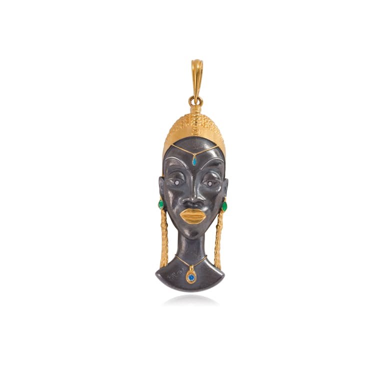 Серебряная подвеска «Африканская маска Куайя», золочение