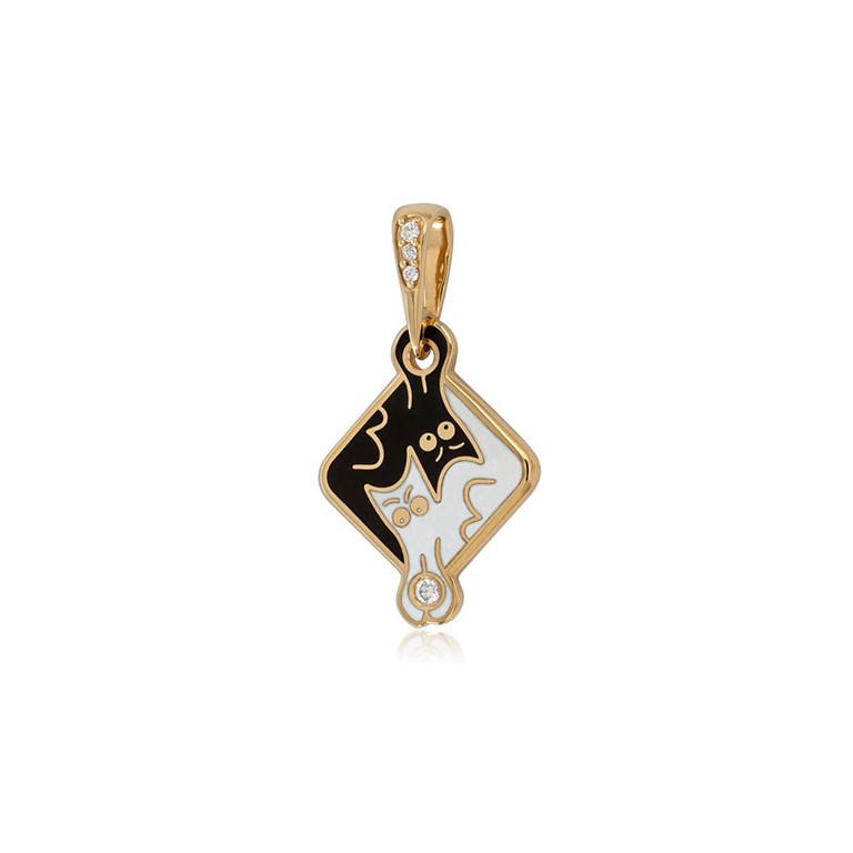 Серебряная подвеска «Котики Инь-Ян» (золочение), черно-белая с фианитами