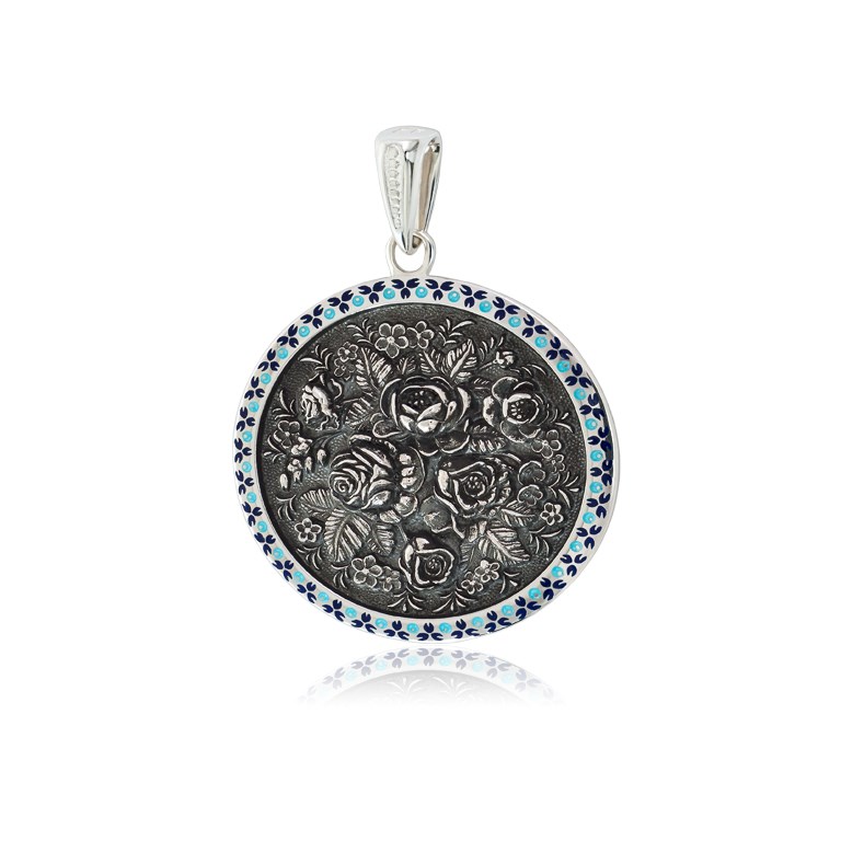 Подвеска выполнена из серебра 925-й пробы с чернением по технологии горячего эмалирования.