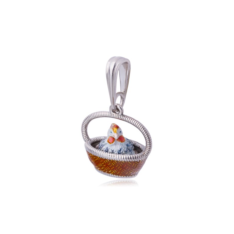 Серебряная подвеска «Курочка в лукошке» выполнена из серебра 925 пробы по технологии горячего эмалирования.