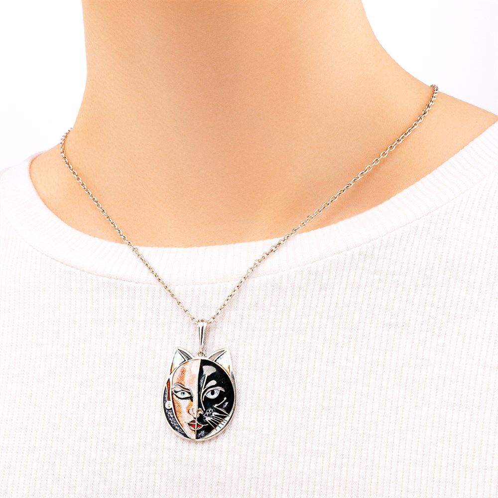 Серебряная подвеска мимикроны «Кошка» выполнена из серебра 925 пробы по технологии горячего эмалирования.