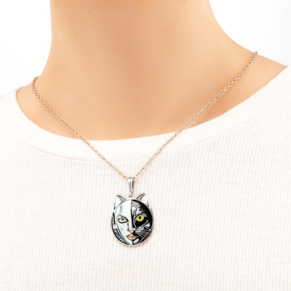 Серебряная подвеска мимикроны «Кошка» выполнена из серебра 925 пробы по технологии горячего эмалирования.