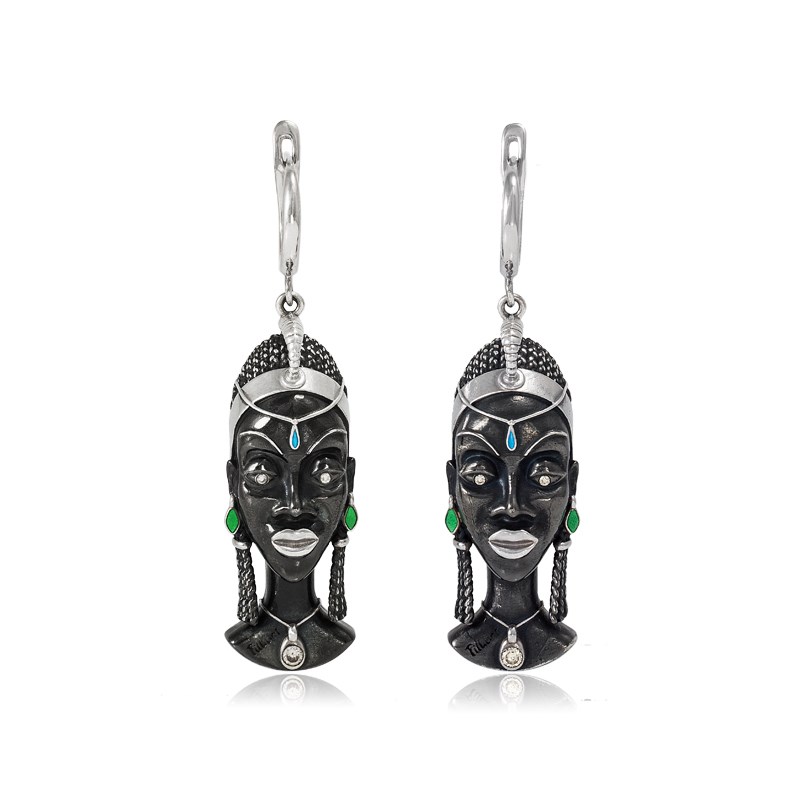 Серьги «Куайя» выполнена в серебре 925* с чернением по технологии горячего эмалирования, вставки – фианиты.