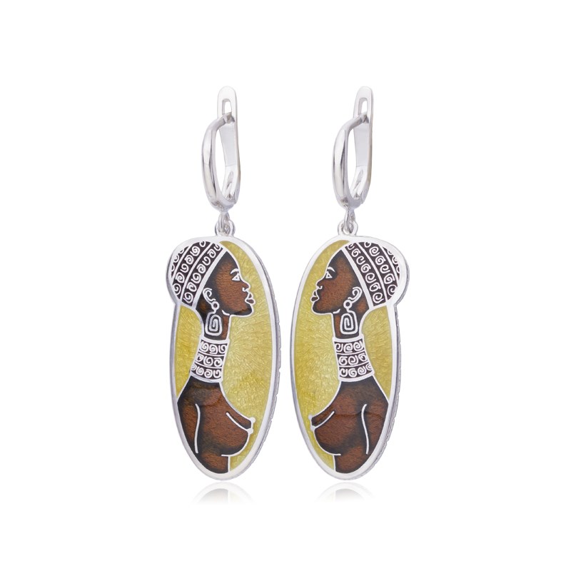 Серьги «Кения» выполнены из серебра 925 пробы по технологии горячего эмалирования.