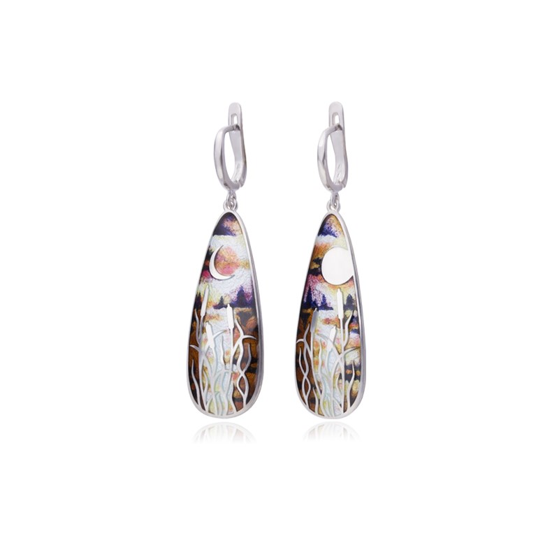 Серьги «Лунная дорожка» выполнены из серебра 925 пробы по технологии горячего эмалирования.