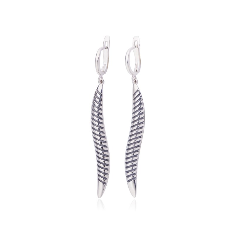 Серебряные серьги «Пири пири», перышко в полоску, выполнены из серебра 925 пробы.