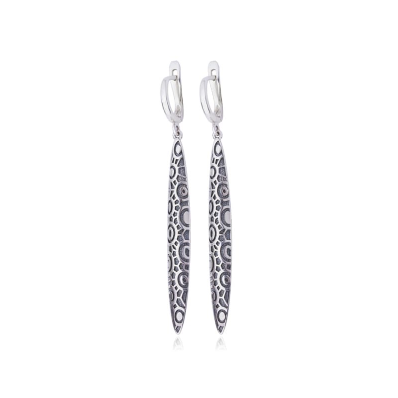 Серебряные серьги «Пири пири», прямые со змеиным орнаментом, выполнены из серебра 925 пробы с чернением.