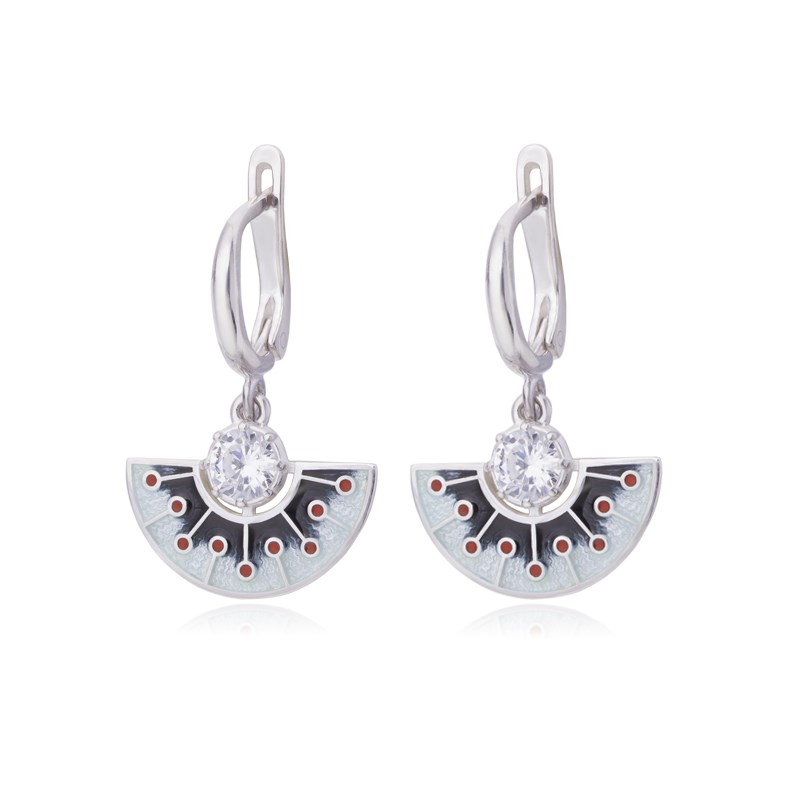 Серебряные серьги-подвески «Фламенко», выполненное в серебре 925* по технологии горячего эмалирования.