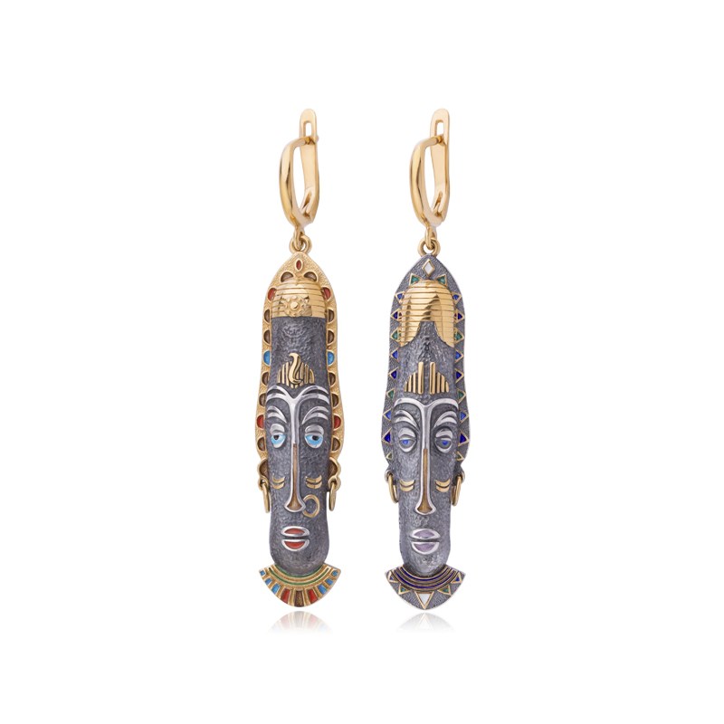 Серебряные серьги-подвески «Тумба-юмба», выполненное в серебре 925* с золочением 999* по технологии горячего эмалирования.