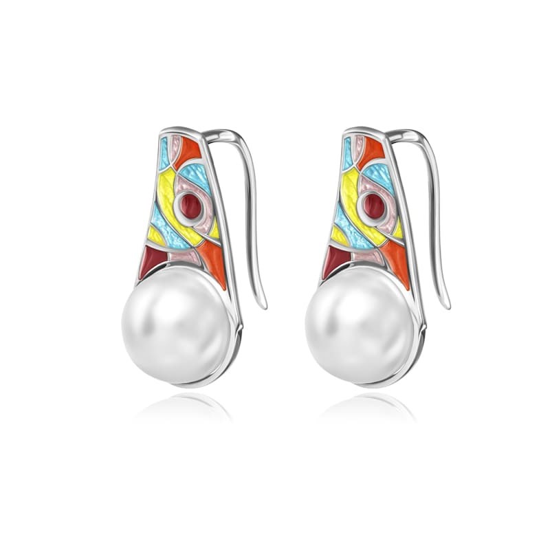 Серьги «Ипровизация» выполнены из серебра 925 пробы по технологии горячего эмалирования с синтетическом жемчугом.
