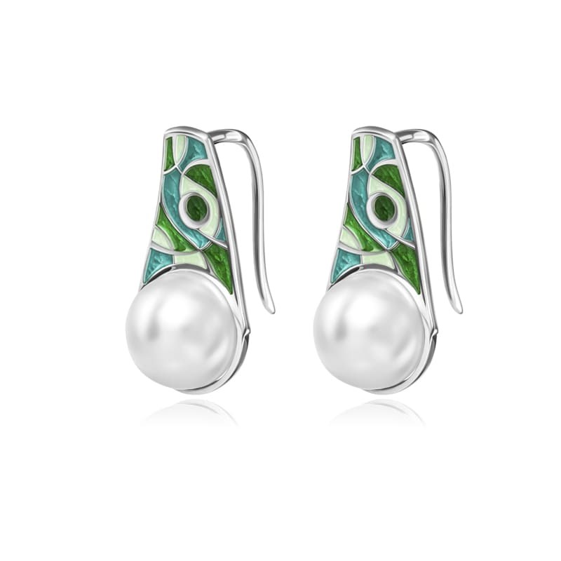 Серьги «Ипровизация» выполнены из серебра 925 пробы по технологии горячего эмалирования с синтетическом жемчугом.