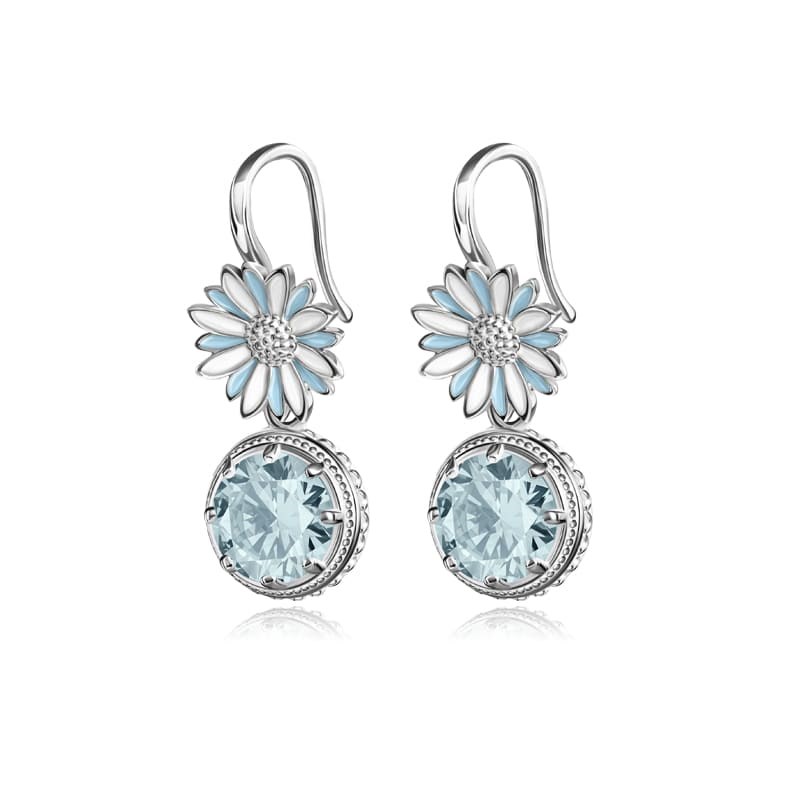 Серьги-подвески «Ромашка» выполнены из серебра 925 пробы по технологии горячего эмалирования с фианитом.