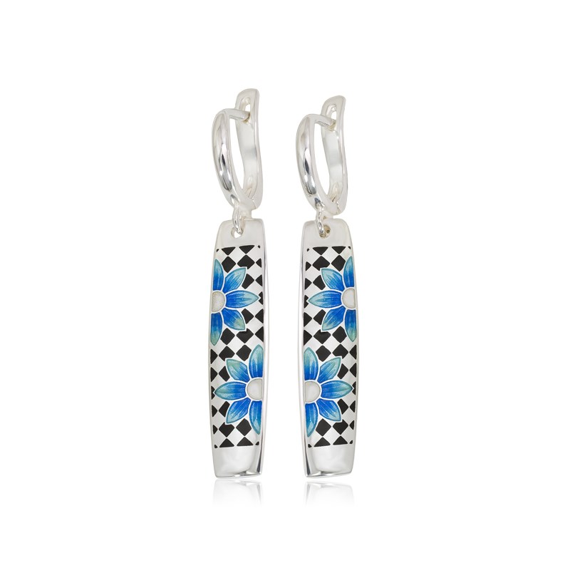 Серьги-подвески «Ромашки» выполнены в серебре 925* по технологии горячего эмалирования.
