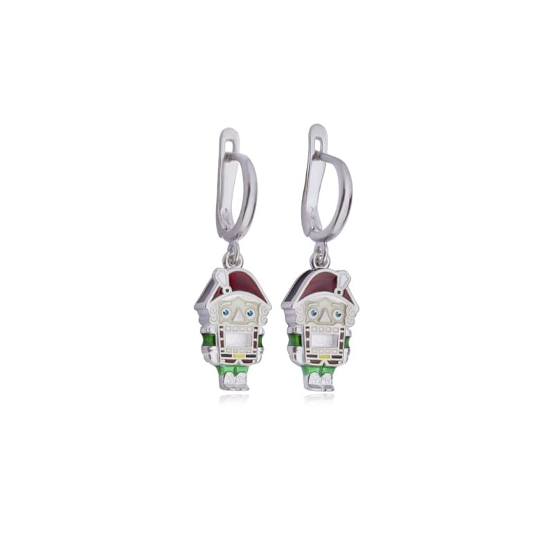 Серьги-подвески «Щелкунчик» выполнены из серебра 925 пробы по технологии горячего эмалирования.