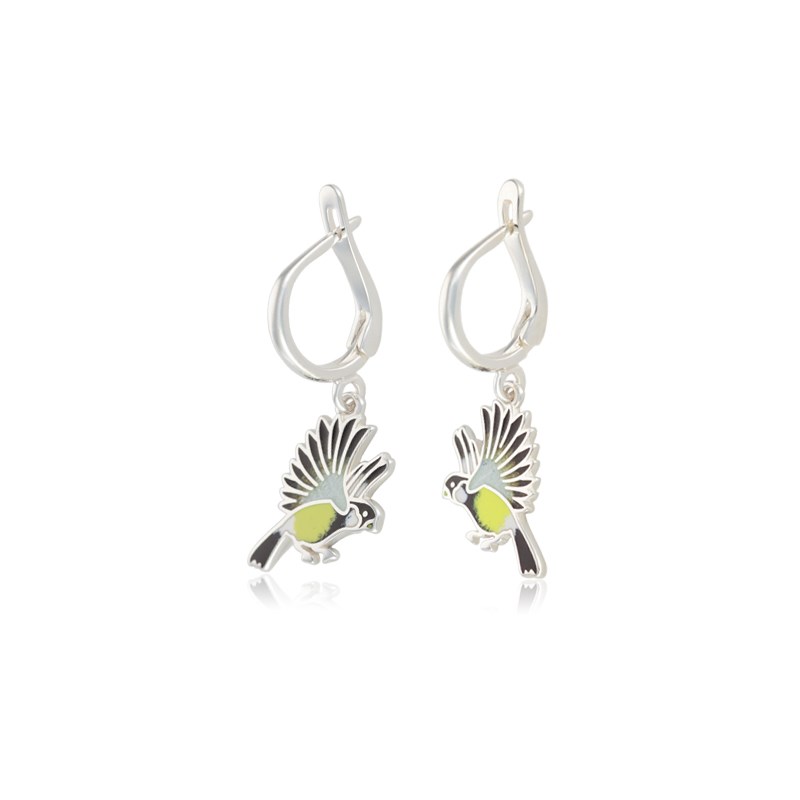 Серьги-подвески из серебра «Синички» выполнены в серебре 925* по технологии горячего эмалирования.