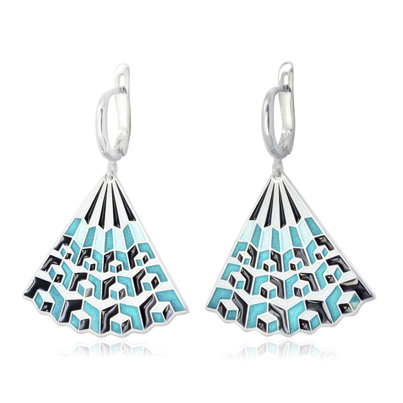 Серьги-подвески «Невозможные фигуры», выполненные в серебре 925* по технологии горячего эмалирования.