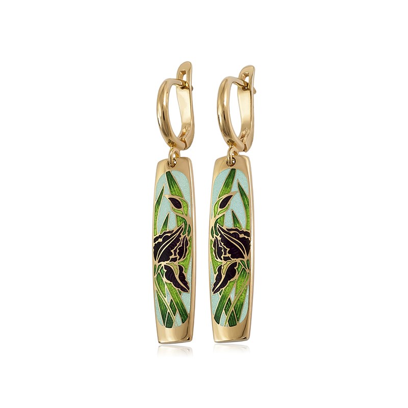 Серьги-подвески серебряные «Ирисы» (золочение), зеленые